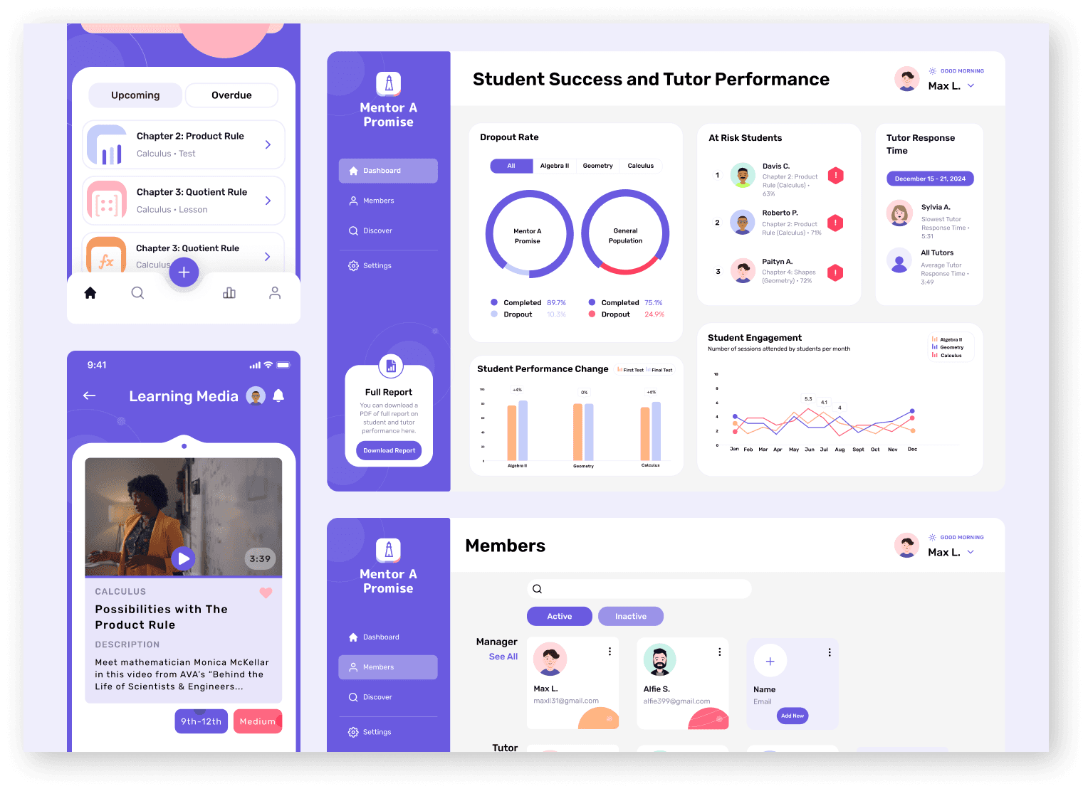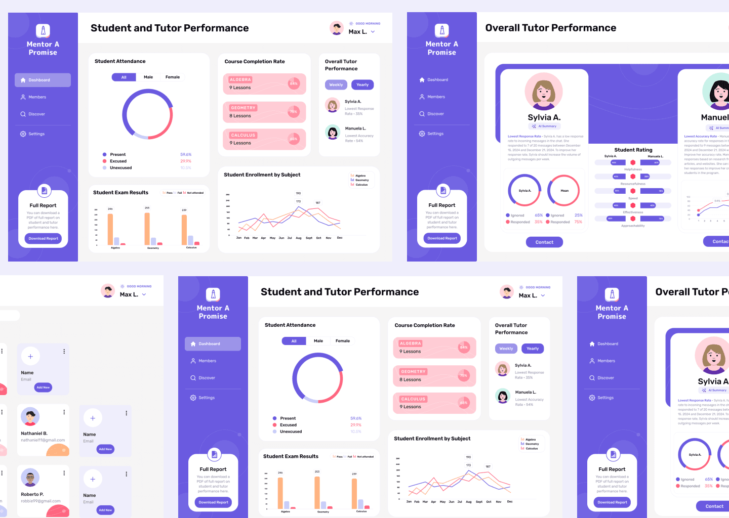 I collaborated with Mentor A Promise to redesign tools for students, tutors, and managers. I designed the timed test for students, personalized lesson creation for tutors, and manager oversight dashboards of tutors and students.