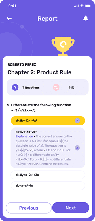 The user reviews their student's Chapter 2: Product Rule test with missed Question 6 explanation.