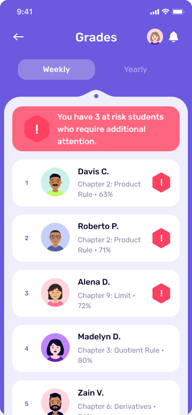 It was not obvious that students who scored below 80% needed more specialized attention. I pitched an inline alert to provide immediate feedback to the tutor in the app. In order to calculate the score for an at risk student: