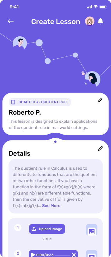 To create a lesson, take into account 3 learning styles, live comments, and an AI--powered suggestion.
