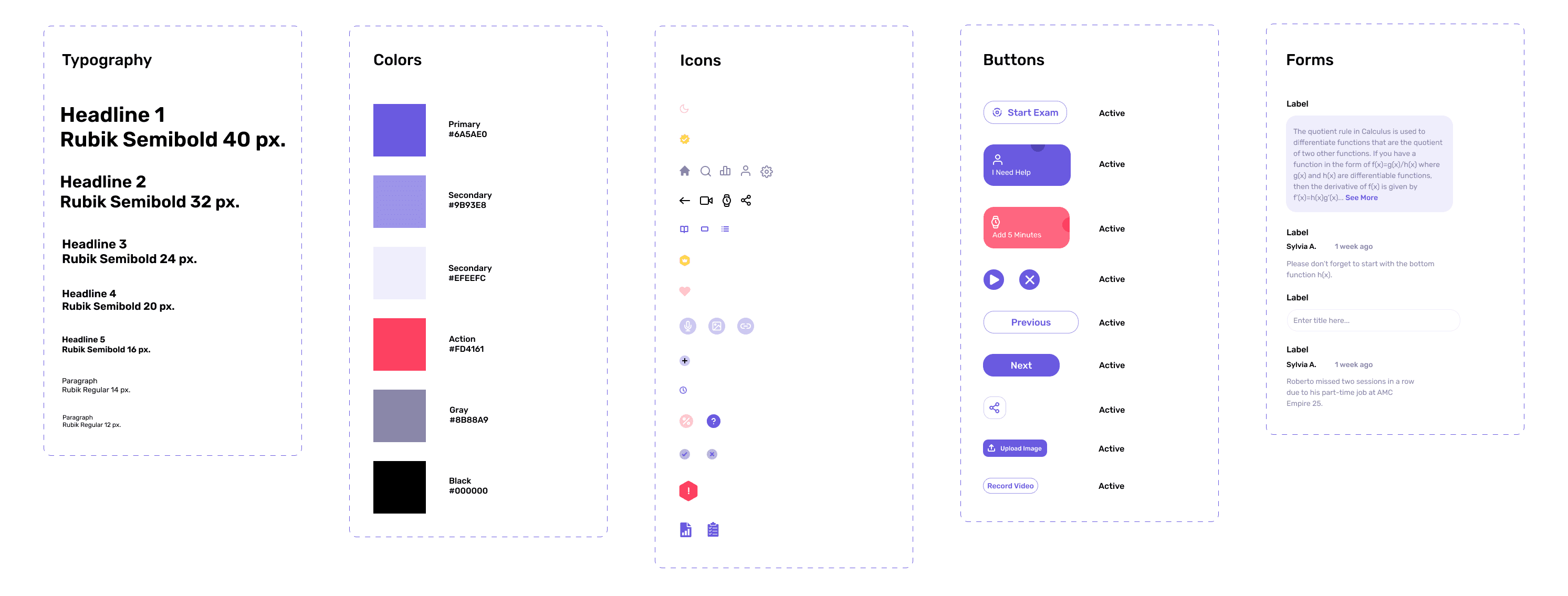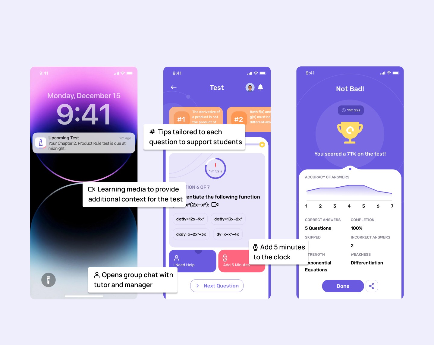I designed 4 features that help students when they get stuck. An ‘I Need Help’ button to alert the tutor and open the chat (in real-time). Both the chat and the learning media features alleviate anxiety during the test. Research has shown that 40%-60% of students experience anxiety during tests (Phan, 2019).