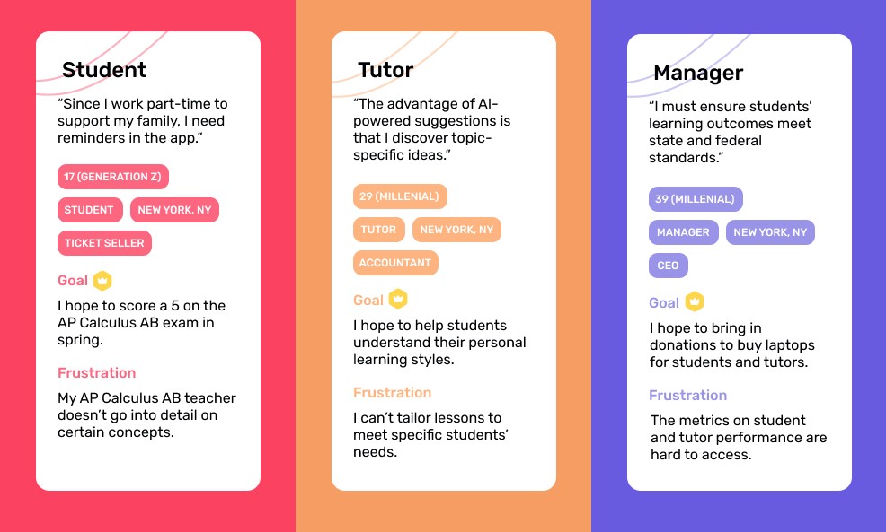 Tutor: Tutors couldn't tailor learning experiences for students. Each student receives the same lesson, regardless of their individual progress, strengths, or weaknesses.